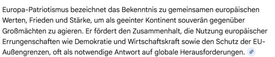 Europa ist es gelungen, nach Jahrhunderten der Kriege, den Frieden zu halten.Die Menschen haben durch sehr viel harte Arbeit Wohlstand erlangt. Den sollten sie genießen und beschützen ...